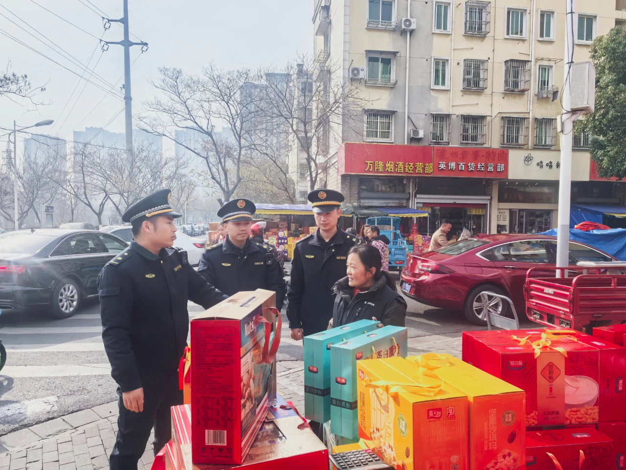 江宁区城管执法人员加强对沿街门面房的巡查力度,督促商户切实履行门前三包责任,营造干净整洁有序的环境和节日氛围。