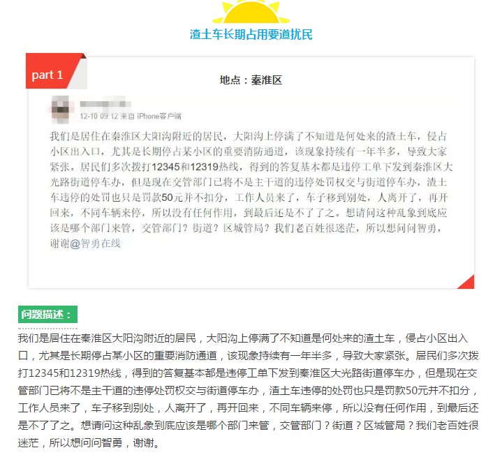 渣土车长期占用小区要道,扰民不堪,长效管理不可缺