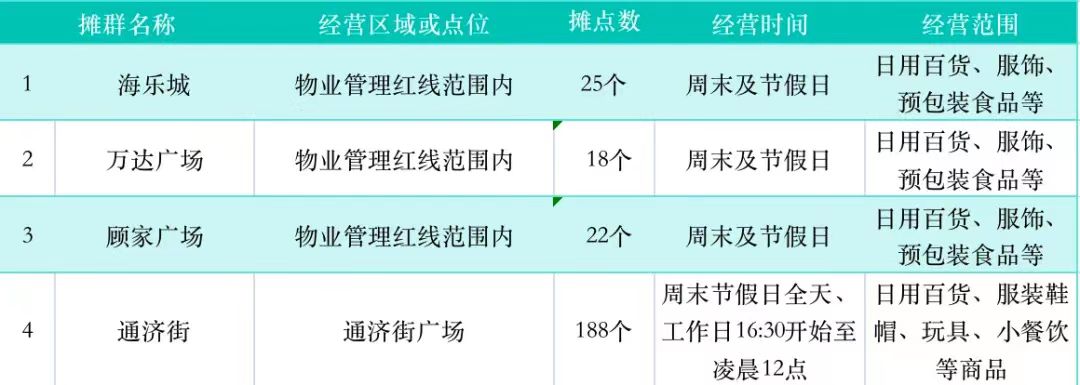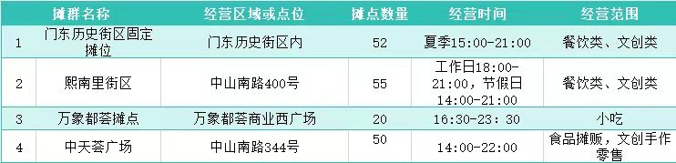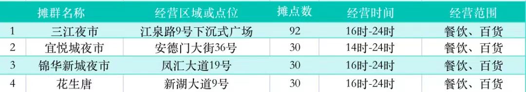 为方便市民购物和晚间休闲,市城管局梳理了一些各区设置的部分疏导点,方便大家参与。