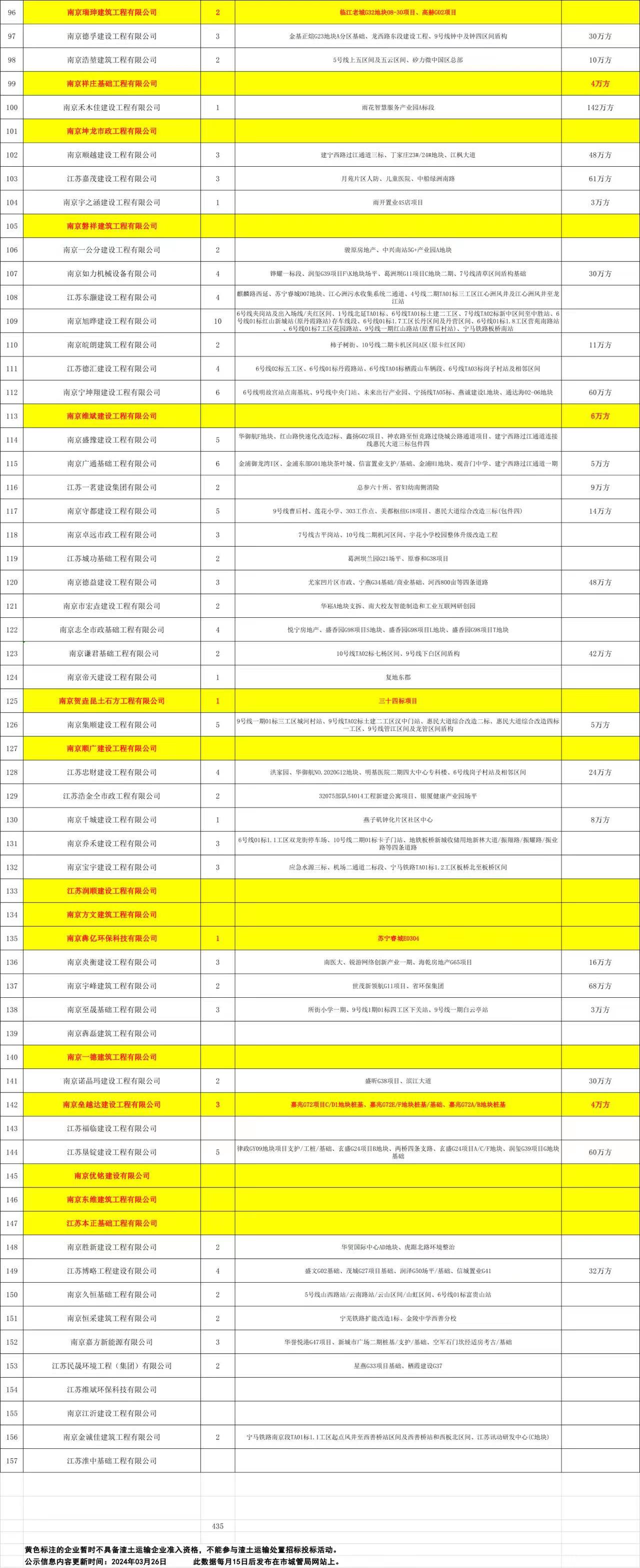 南京市渣土运输企业信息公示(2024年3月)