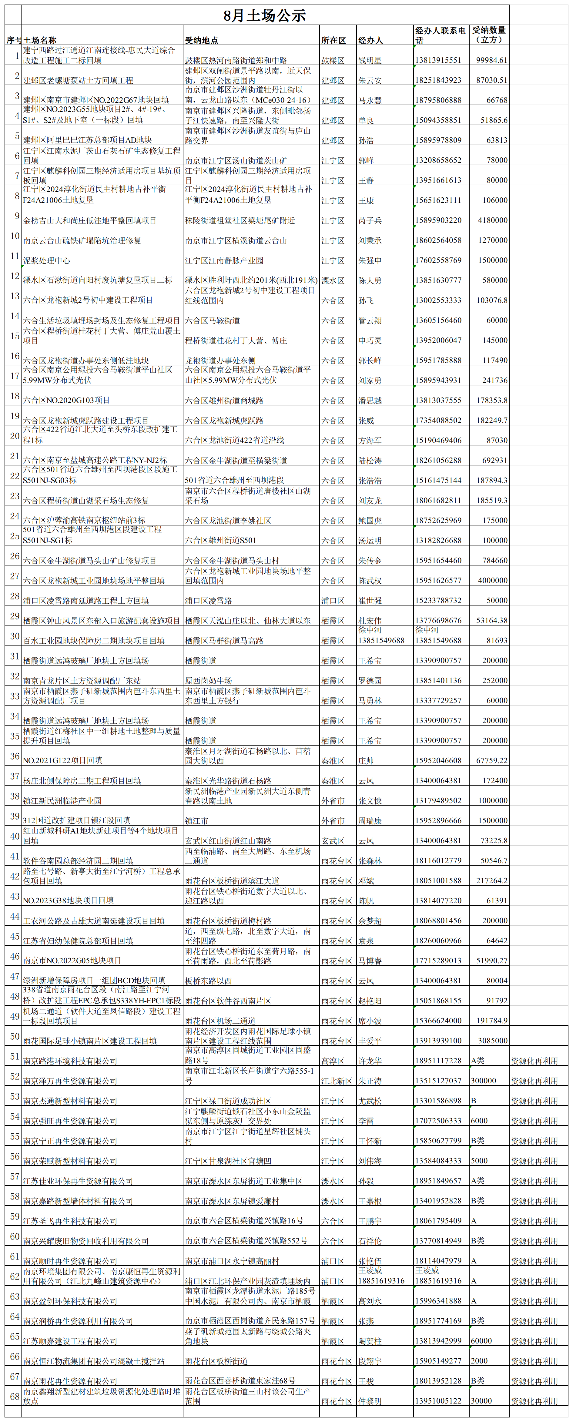南京市回填项目公示(2025年8月)