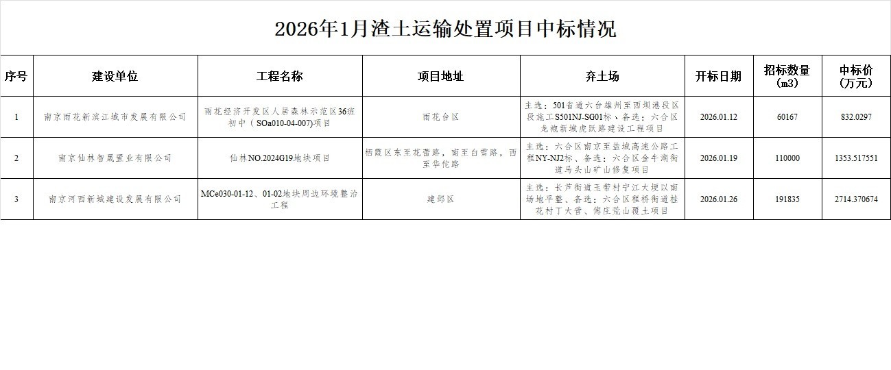 2026年1月渣土运输处置项目中标情况