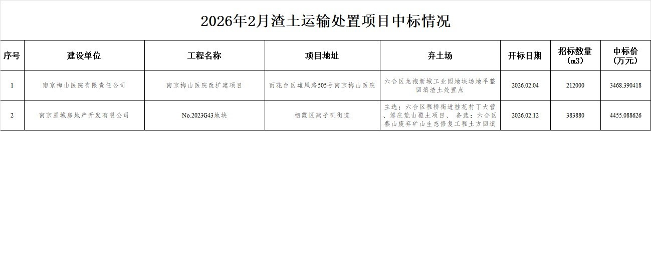 2026年2月渣土运输处置项目中标情况